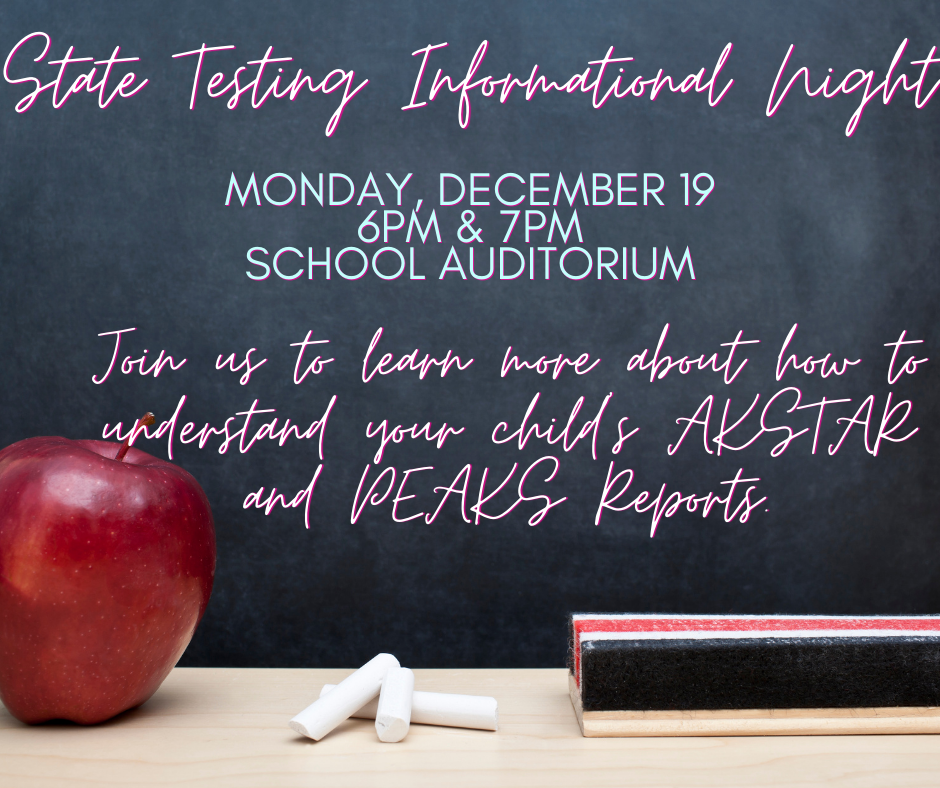 AKSTAR Testing Update: Due to technical issues today, we were unable to do our first day of testing. The technical issues have now been resolved and testing will resume tomorrow. To make up this testing day grades 3-6 will test on Friday this week, and grades 7-9 will test on Thursday.